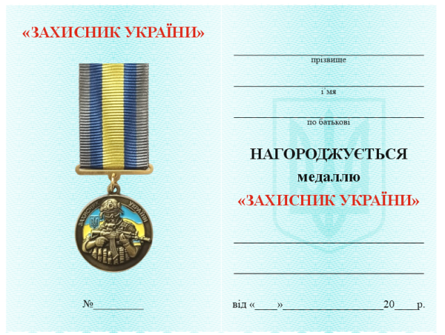 - Послугу друку прізвища, імені та по батькові нагороджуваного (50 грн за одне посвідчення).