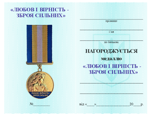 Медаль для жінок «Любов і вірність — зброя сильних» (НОВА)