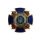 - Форма: Хрест із синьою емаллю, між променями — золоті промені, що символізують світло, шляхетність та силу духу.